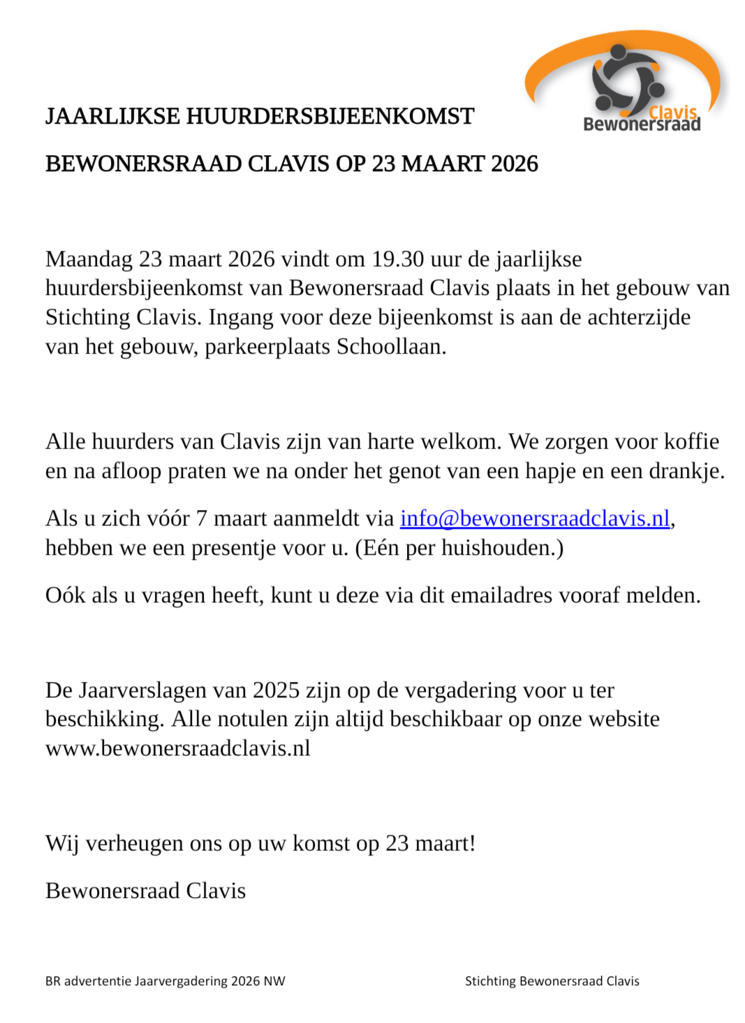 De Bewonersraad is belangenbehartiger van de huurders van Clavis.